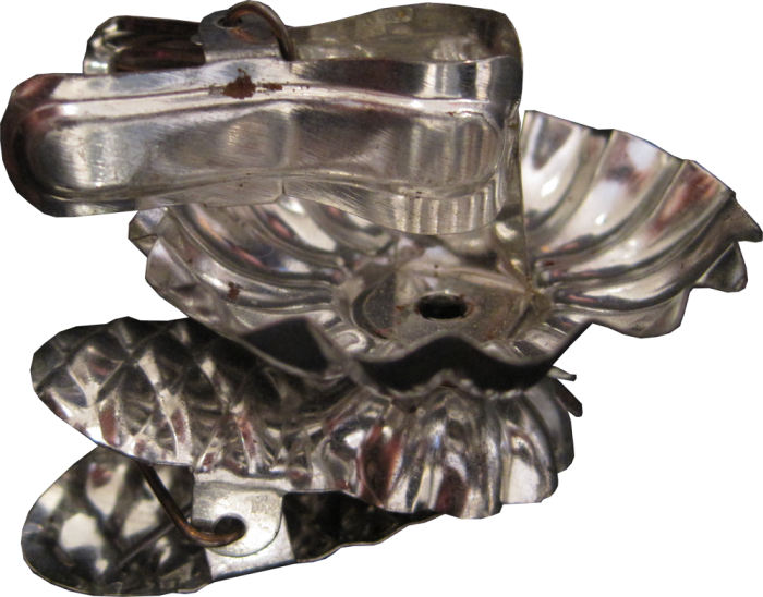 Durchmesser ca 4 cm Breite 5 cm Höhe 3 cm Historische Kerzenhalter zum kerzeneinklemmen, Zustand gut bis sehr gut.