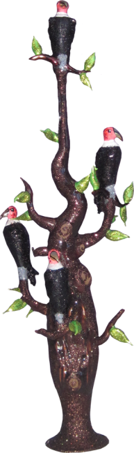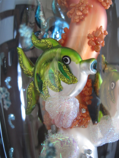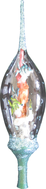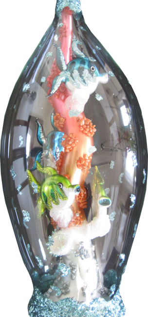 Exklusive Spitze in Form einer Aquariumsäule mit 4 Fischen im Inneren, Hülle transparentes Glas blau Getupft. ca. H: 47 cm, Durchmesser: 11 cm.