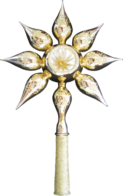 Goldene Sternprunckspitze Mundgeblasen mit Reflectormitte. ca. H: 29cm, B: 18cm, T: 6cm